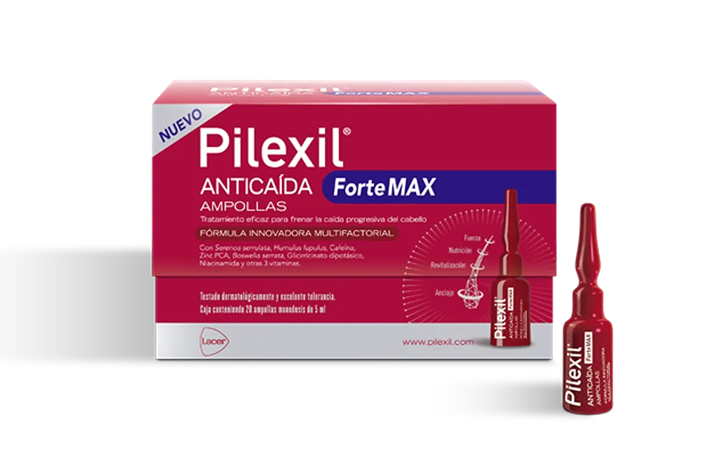 Pilexil Forte MAX Ampollas Anticaída es un tratamiento especialmente diseñado para la caída progresiva y crónica del cabello, generada por factores hormonales como la menopausia o hereditaria (alopecia androgenética).